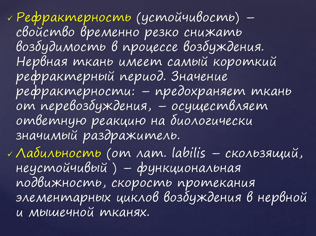 Рефрактерность (устойчивость) –свойство временно резко снижать