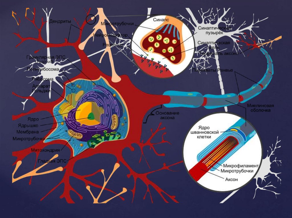 нейронами, клетками органов,