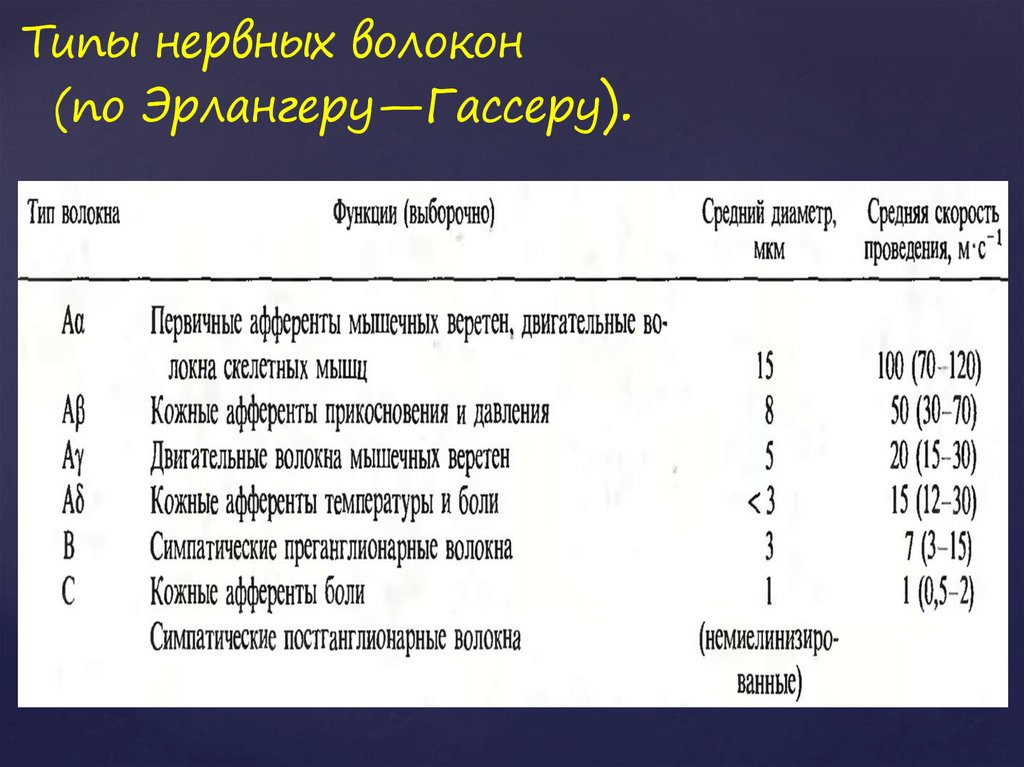 Типы нервных волокон(по Эрлангеру—Гассеру).