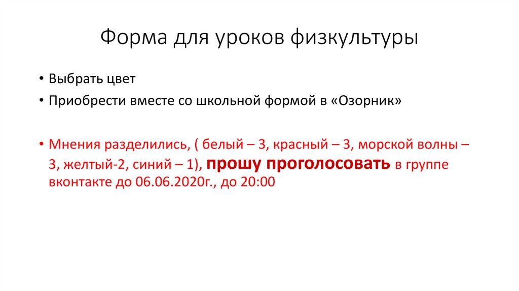Форма для уроков физкультуры• Выбрать цвет