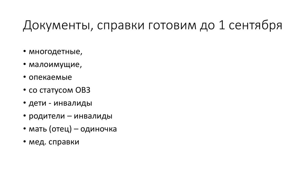 Документы, справки готовим до 1 сентября• многодетные,