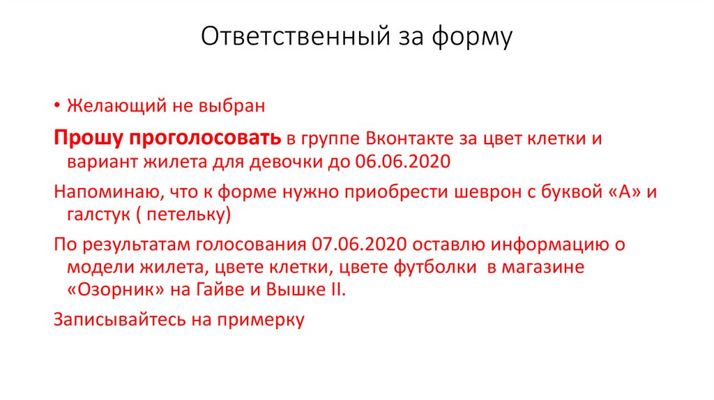 Ответственный за форму• Желающий не выбран