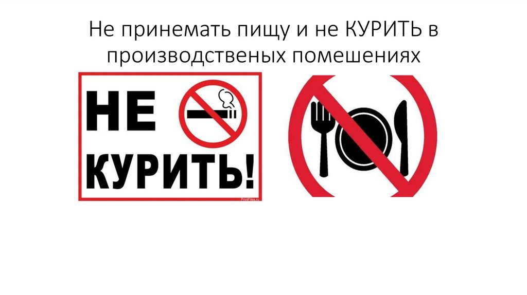 Не принемать пищу и не КУРИТЬ впроизводственых помешениях