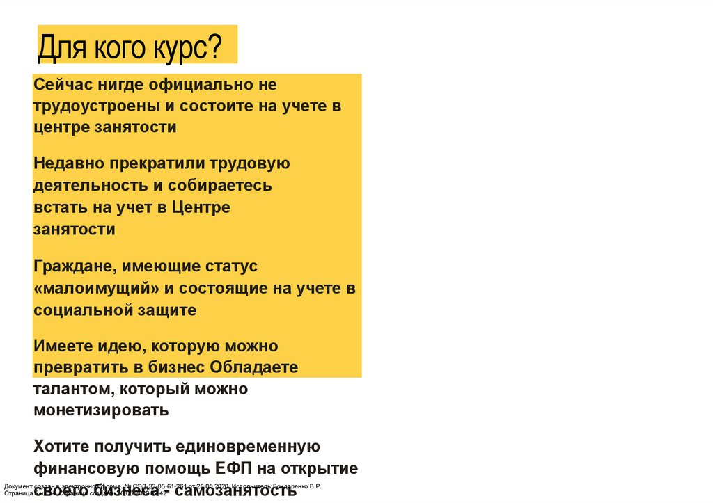 Для кого: Физическое лицо, признанное официальноНАЧНИ СВОЕ ДЕЛО