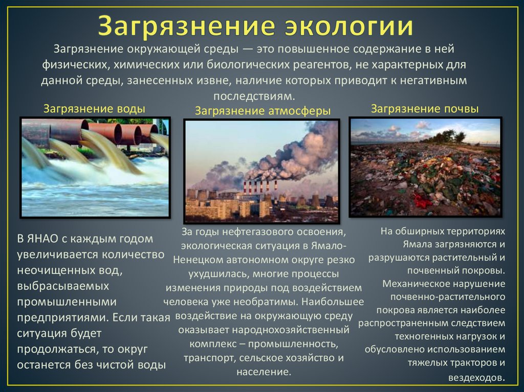 Загрязнение окружающей среды — это повышенное содержание в нейфизических, химических или биологических реагентов, не характерных для