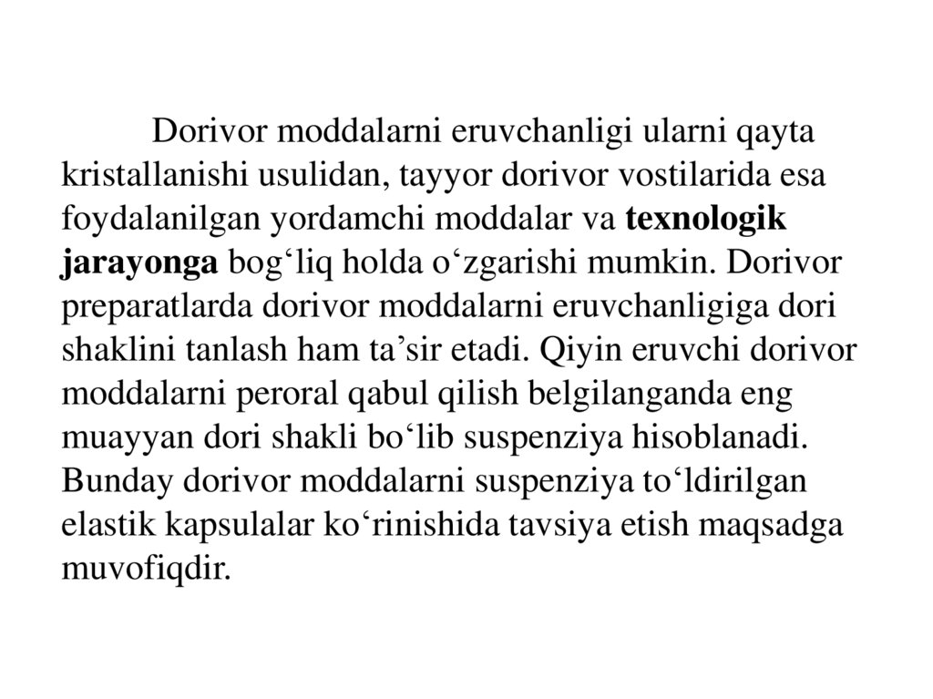 shaklini tanlash ham ta’sir etadi. Qiyin eruvchi dorivor
