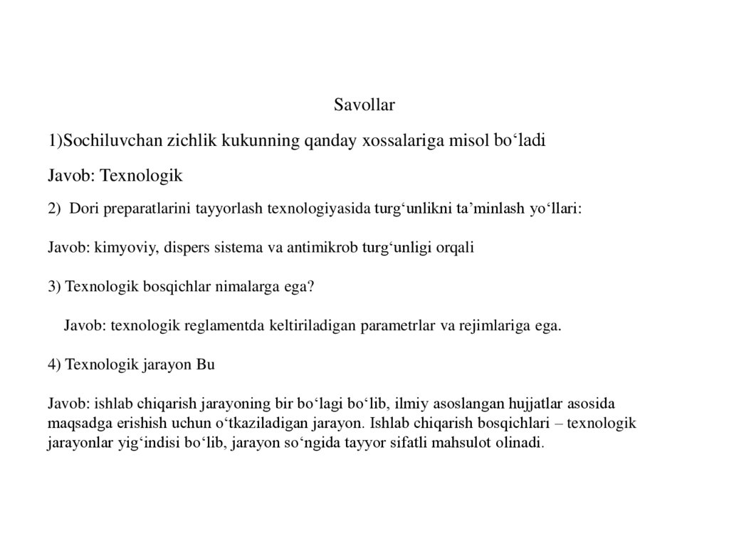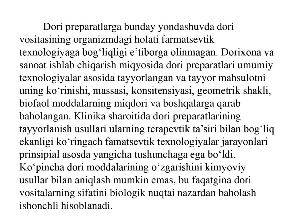 mumkin. Tayyor dori turlarining texnologiyasini ishlab chiqishda