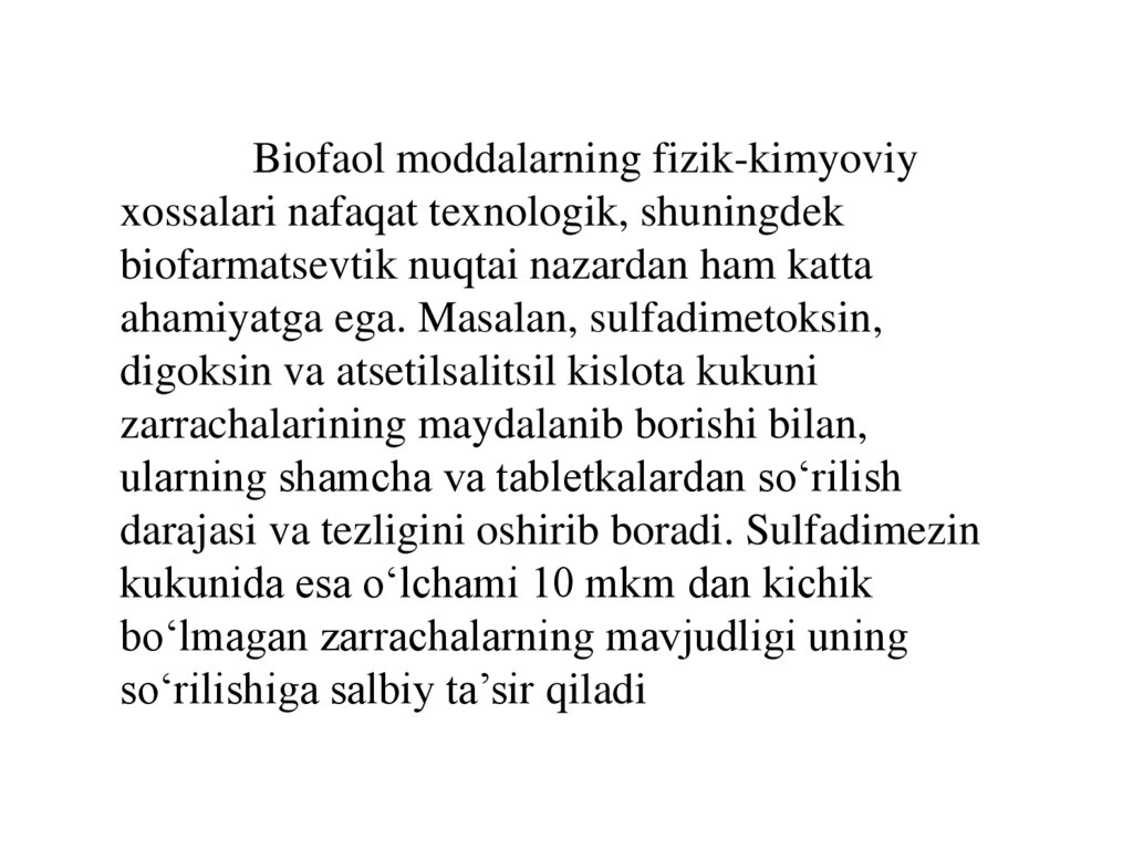 tayyorlash usuli preparat terapevtik faolligiga ta’sir