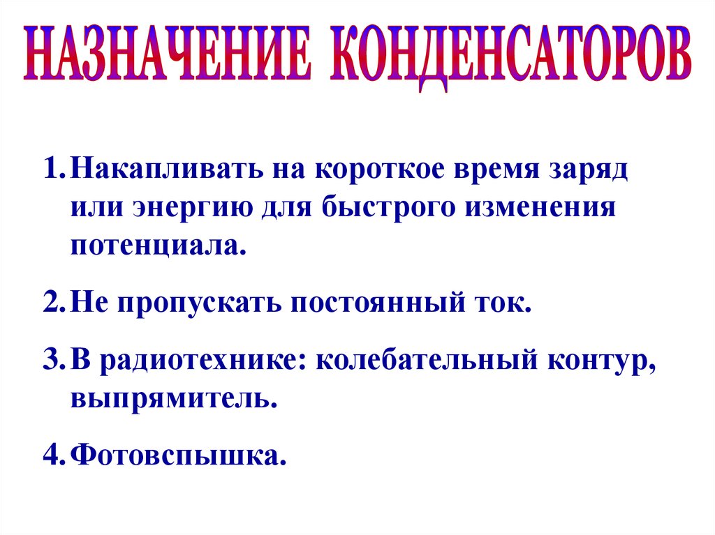1.Накапливать на короткое время зарядили энергию для быстрого изменения