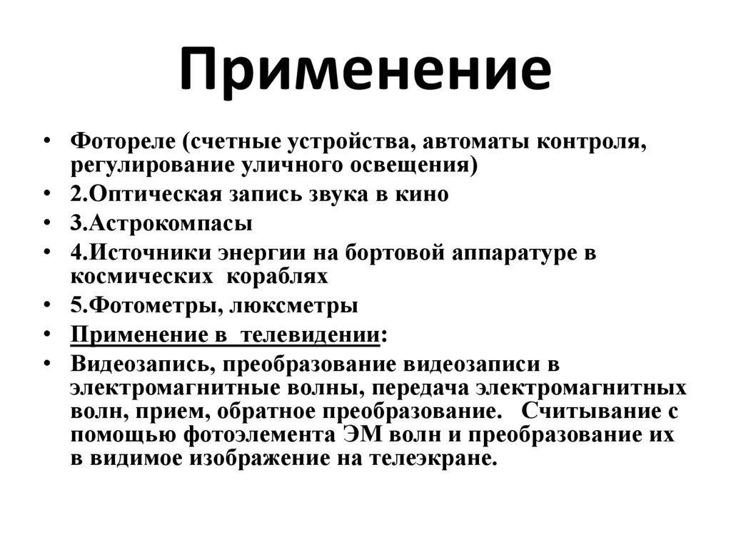 Применение• Фотореле (счетные устройства, автоматы контроля,