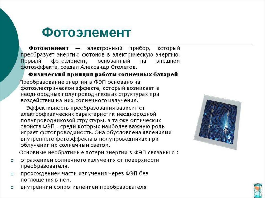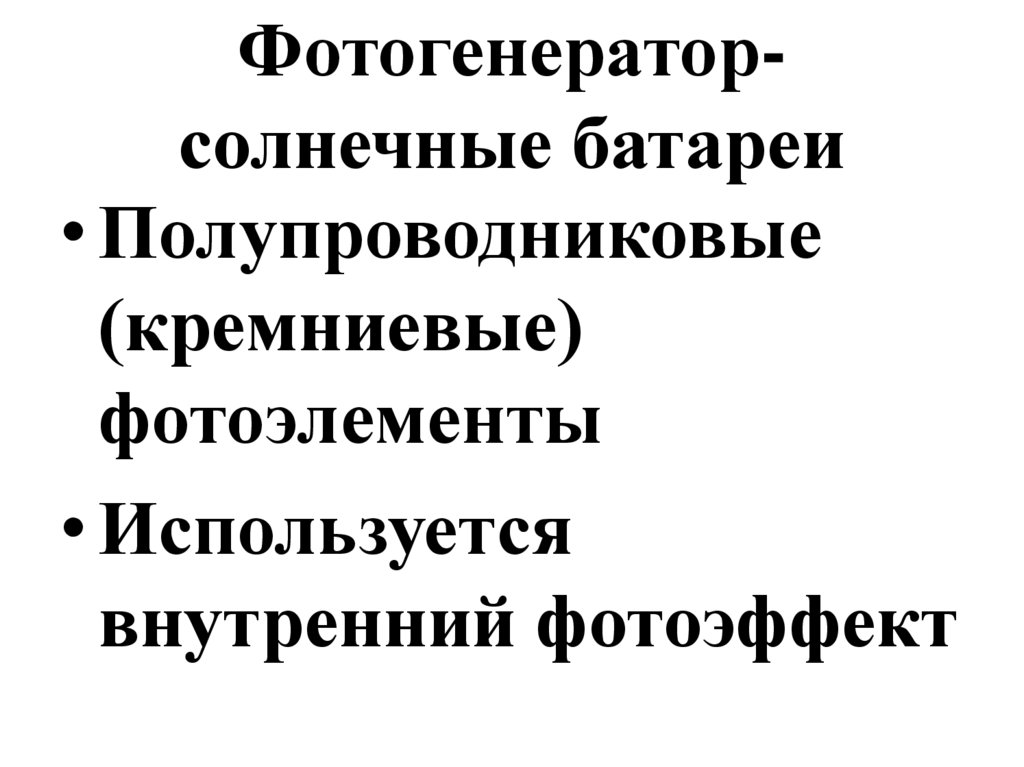 Фотогенераторсолнечные батареи• Полупроводниковые