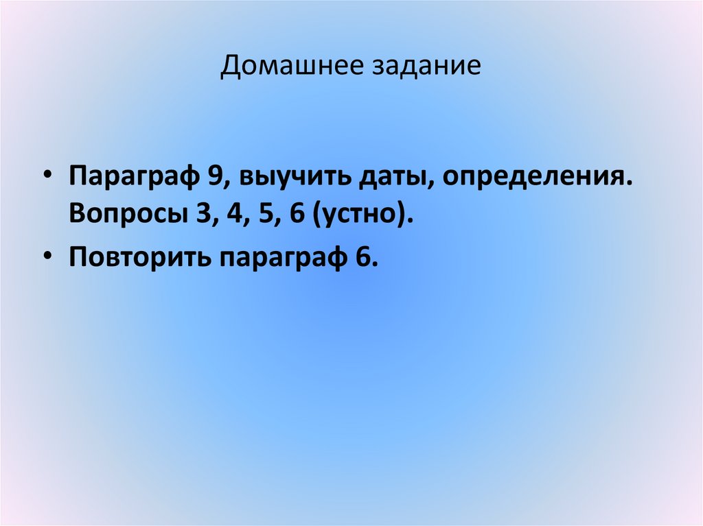 Домашнее задание• Параграф 9, выучить даты, определения.