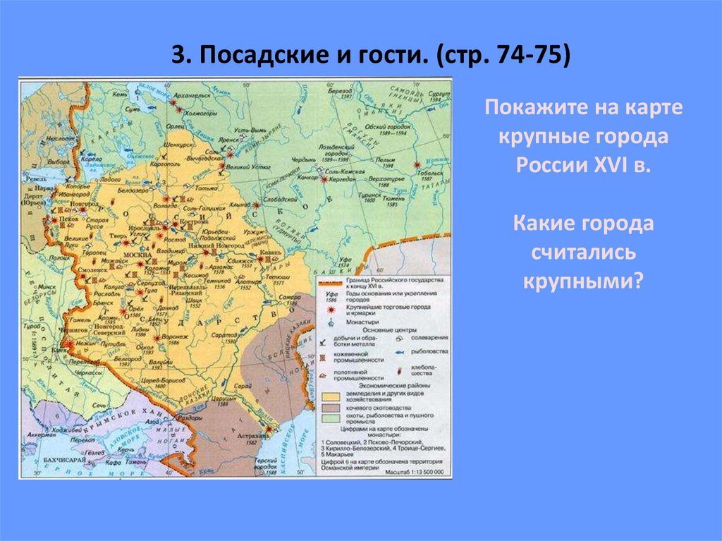 3. Посадские и гости. (стр. 74-75)Покажите на карте