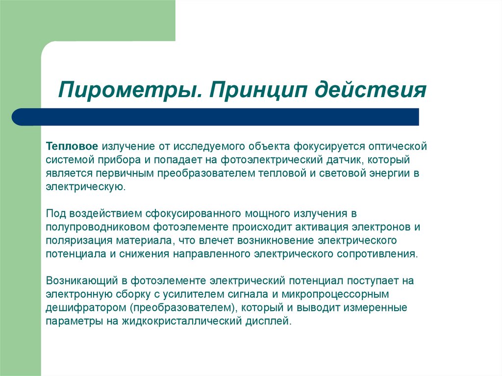 Пирометры. Принцип действияТепловое излучение от исследуемого объекта фокусируется оптической