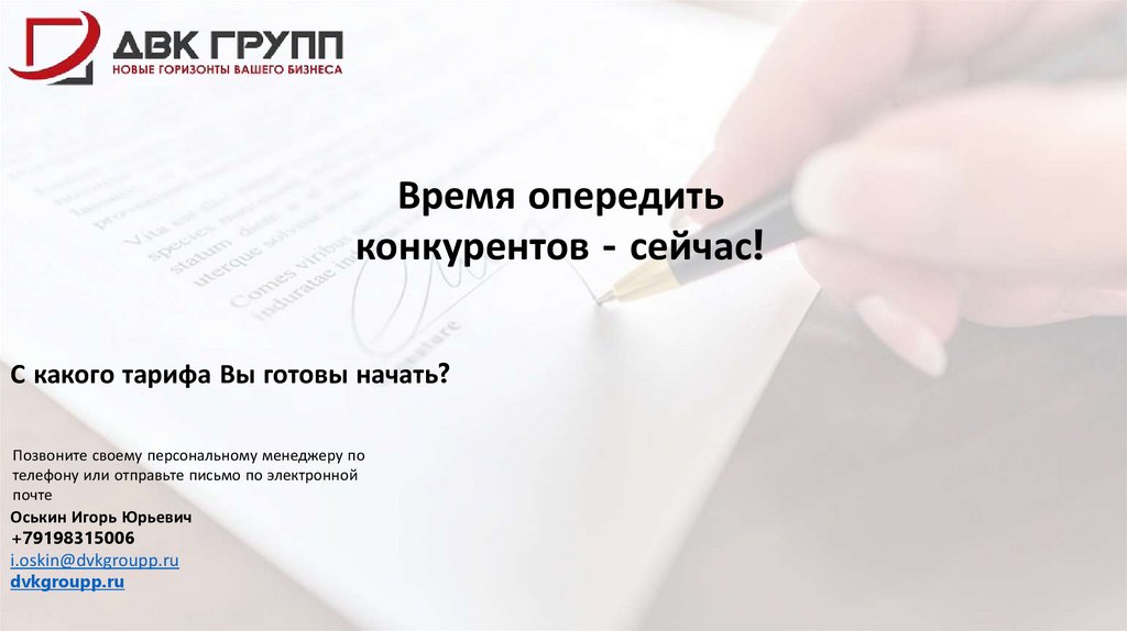 Время опередитьконкурентов - сейчас!