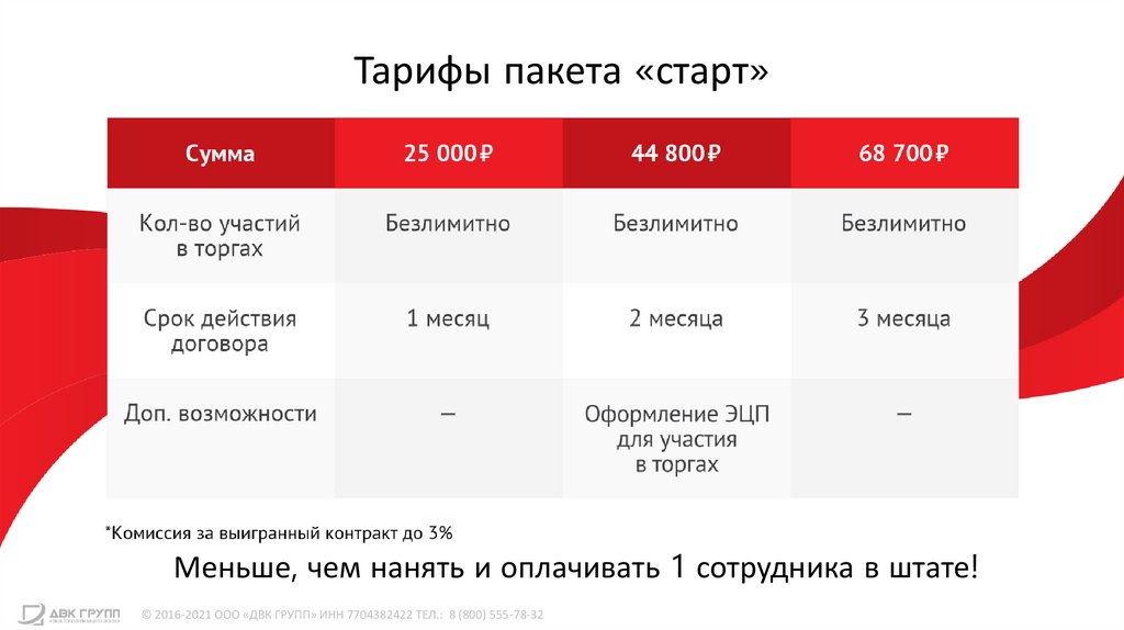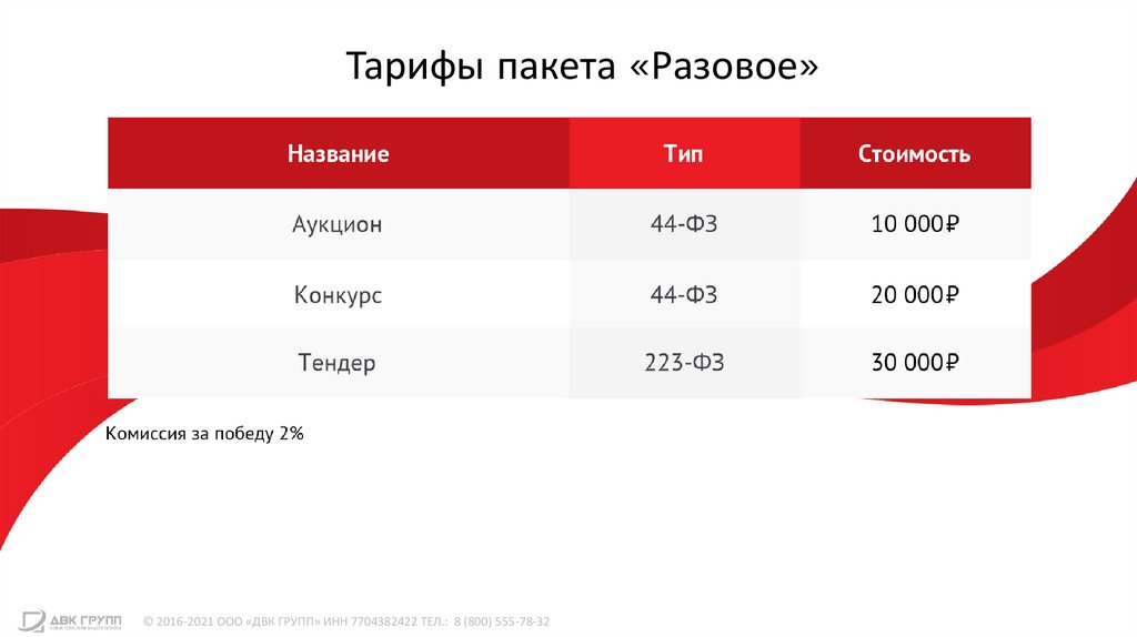 Тарифы пакета «Разовое»© 2016-2021 ООО «ДВК ГРУПП» ИНН 7704382422 ТЕЛ.: 8 (800) 555-78-32