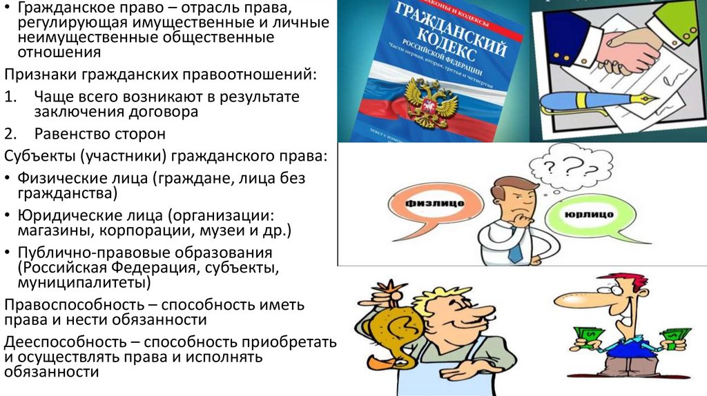 • Гражданское право – отрасль права,регулирующая имущественные и личные
