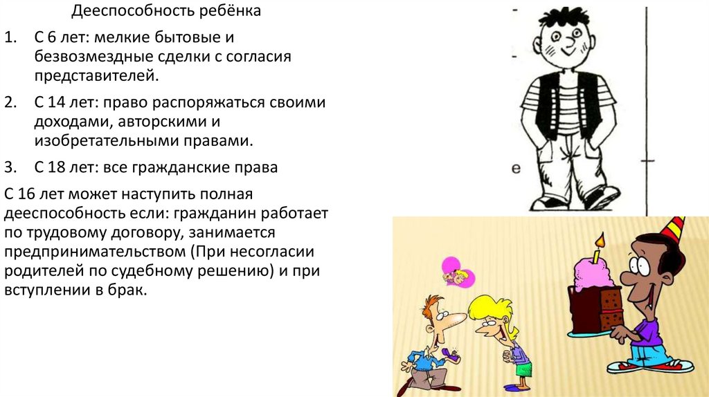 Дееспособность ребёнка1. С 6 лет: мелкие бытовые и