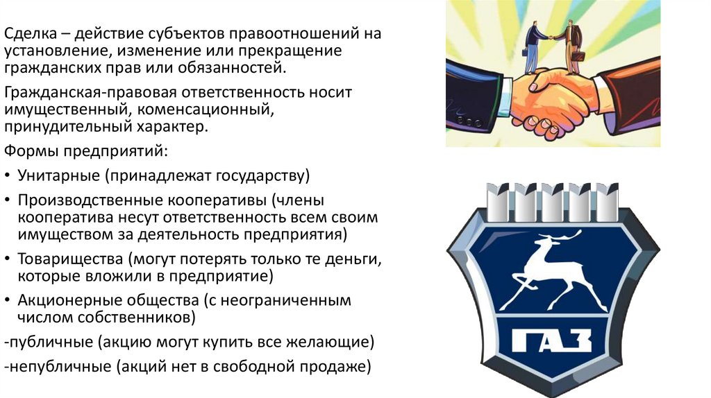 Сделка – действие субъектов правоотношений наустановление, изменение или прекращение