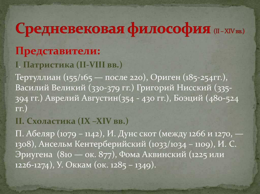 П. Абеляр (1079 – 1142), И. Дунс скот (между 1266 и 1270, —