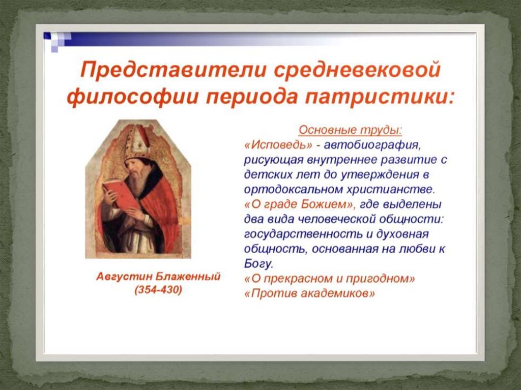 Василий Великий (330-379 гг.) Григорий Нисский (335394 гг.) Аврелий Августин(354 - 430 гг.), Боэций (480-524