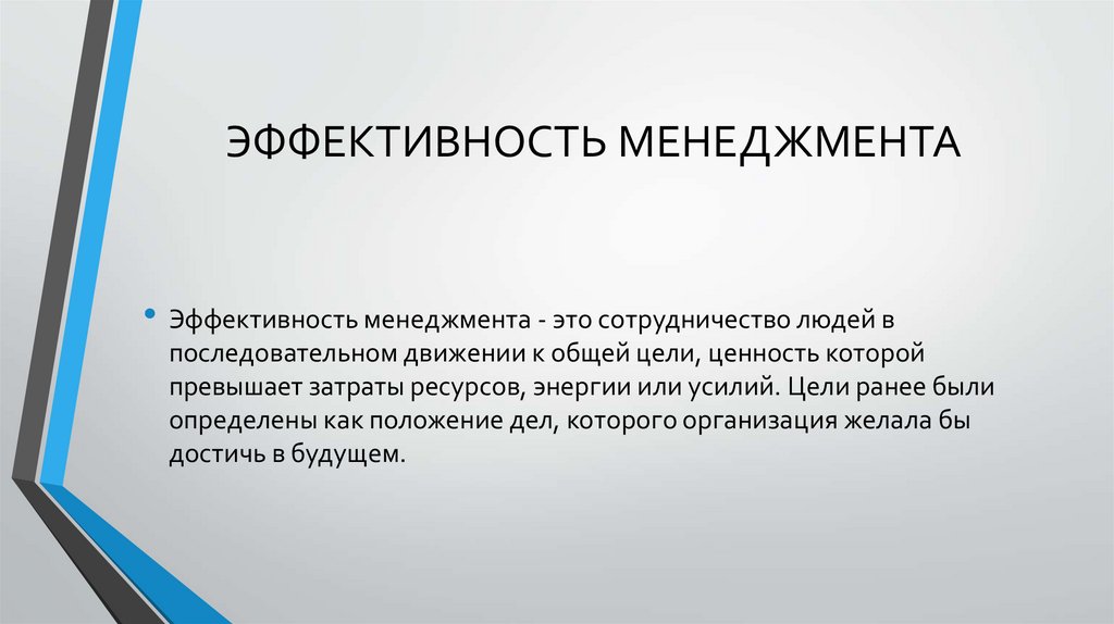 ЭФФЕКТИВНОСТЬ МЕНЕДЖМЕНТА• Эффективность менеджмента - это сотрудничество людей в