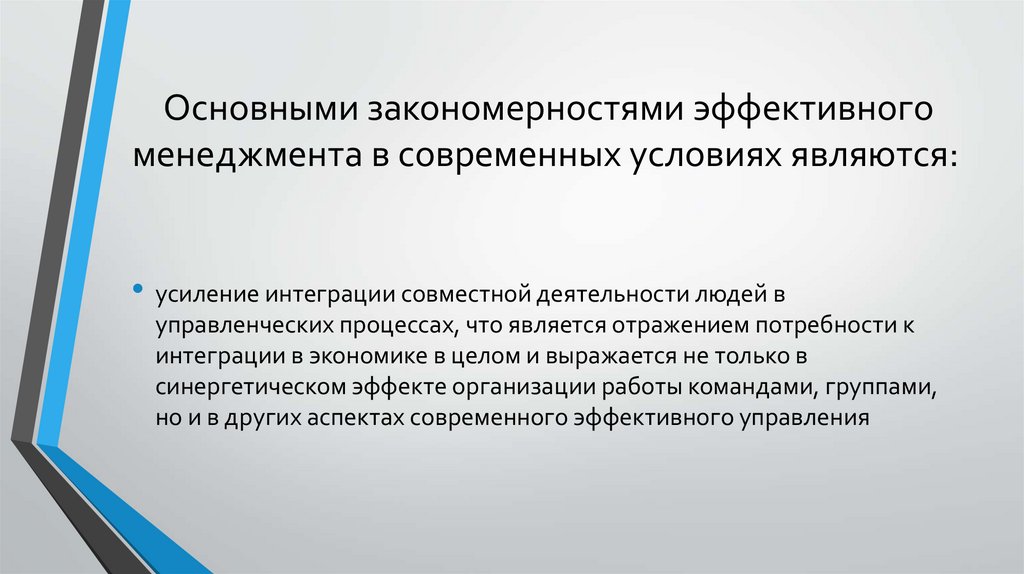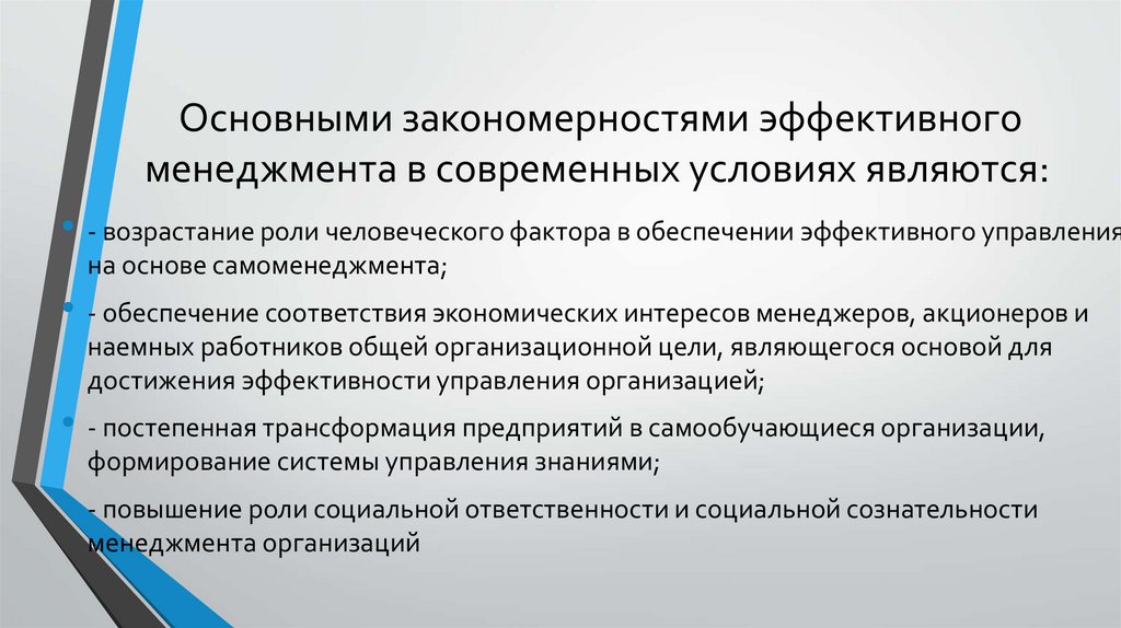 Основными закономерностями эффективногоменеджмента в современных условиях являются: