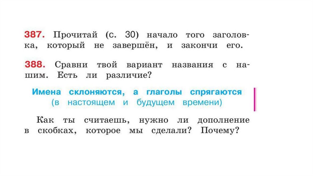 окончания глаголов. Имена