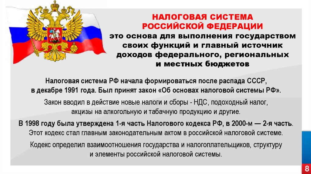 Этот кодекс стал главным законодательным актом в российской налоговой системе.