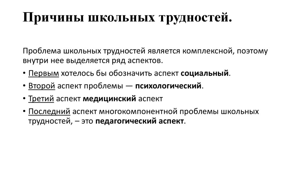 Причины школьных трудностей.Проблема школьных трудностей является комплексной, поэтому