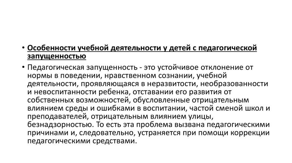 • Педагогическая запущенность - это устойчивое отклонение от