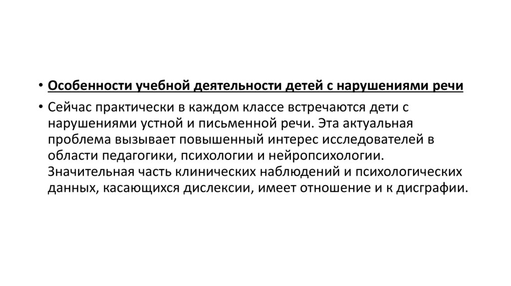 нарушениями устной и письменной речи. Эта актуальная