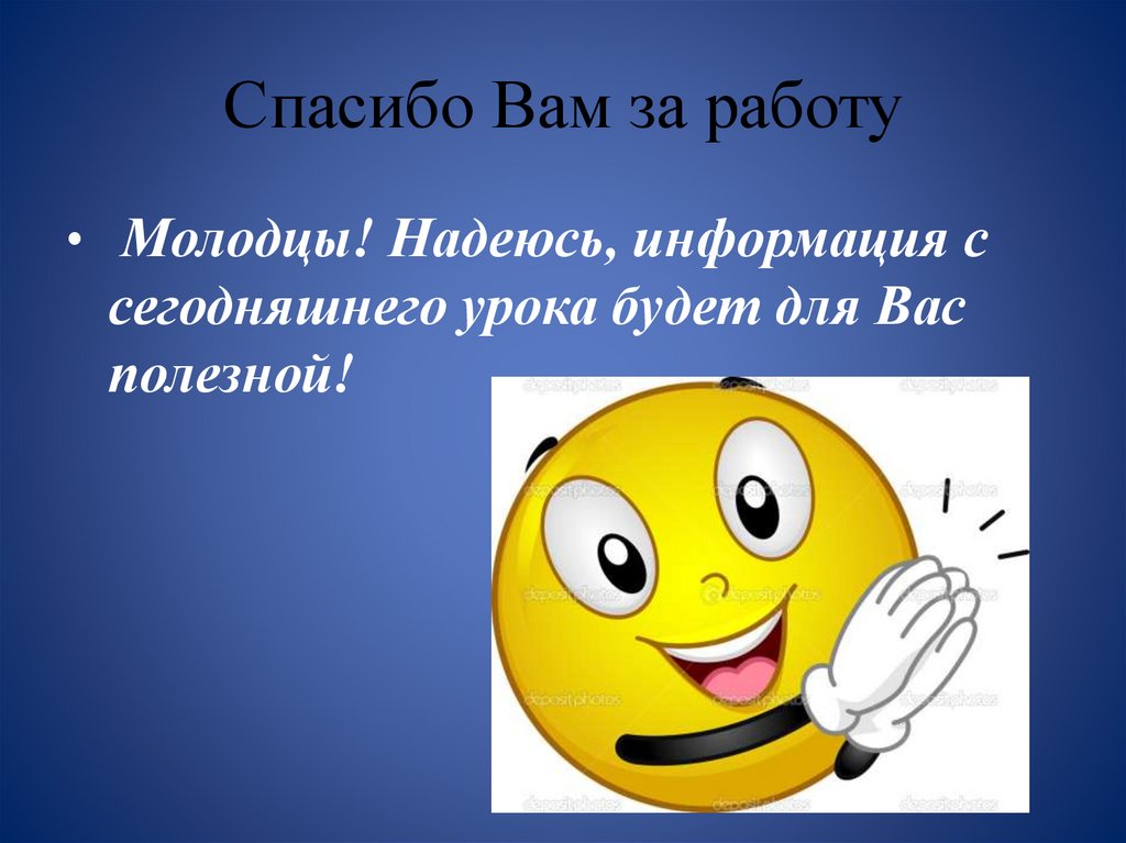 Спасибо Вам за работу• Молодцы! Надеюсь, информация с