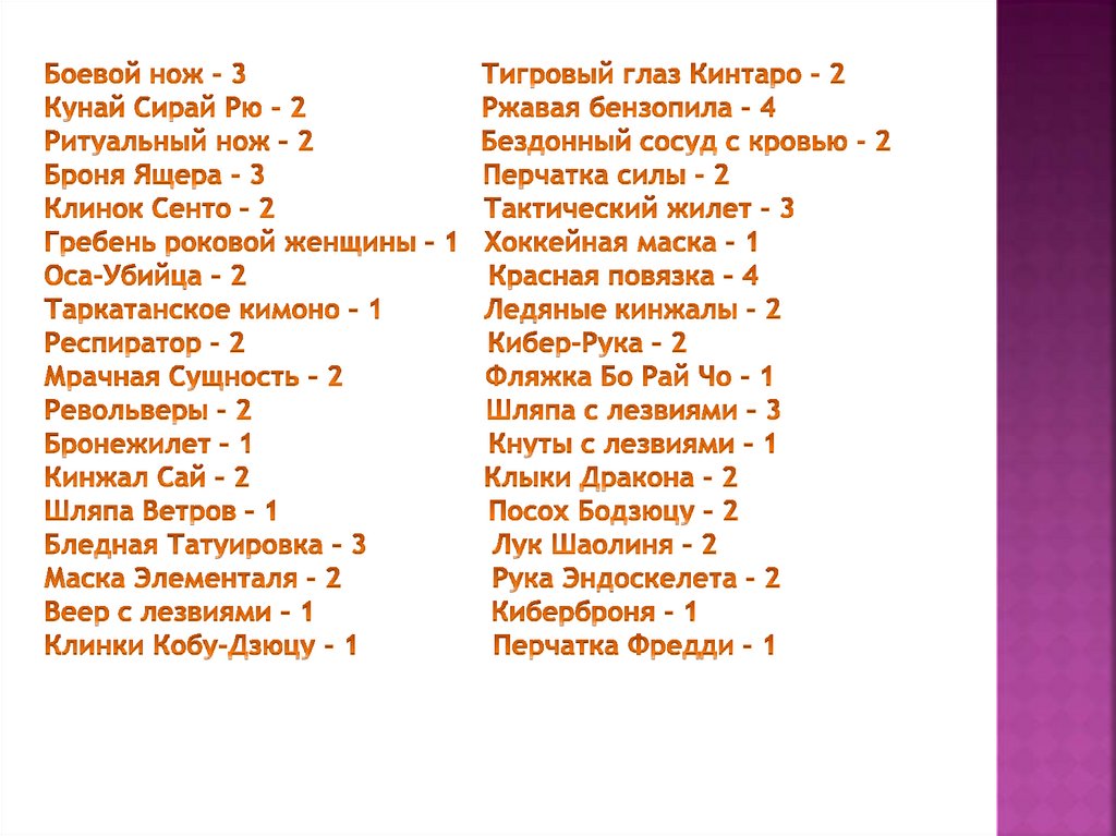 Снаряжение на персонажей12.
