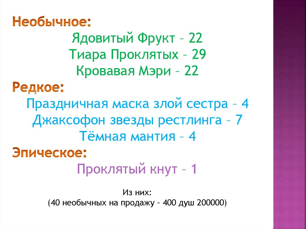 (40 необычных на продажу – 400 душ 200000)