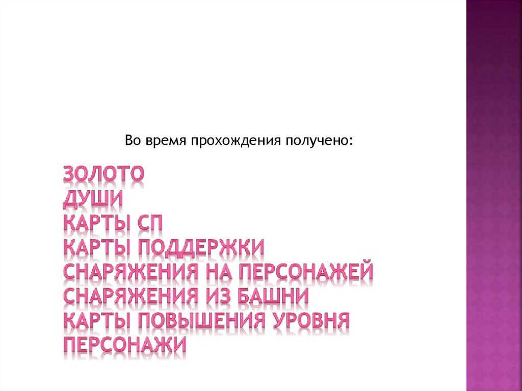 Во время прохождения получено:6.