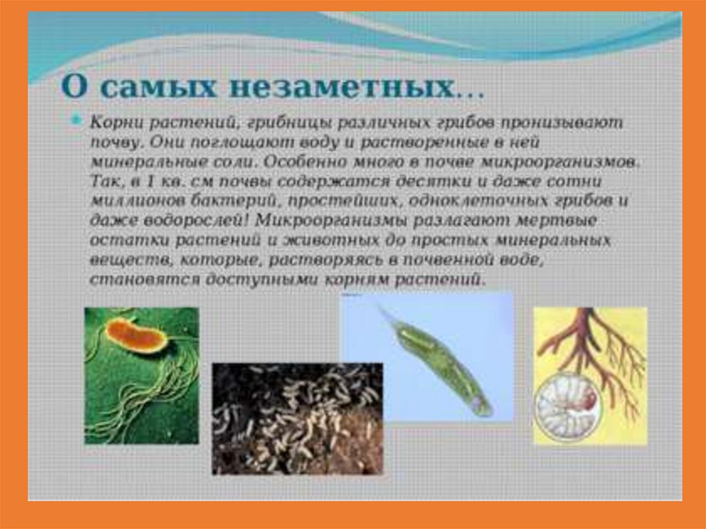 между частицами почвы и комфортно себя там чувствовать (бактерии,