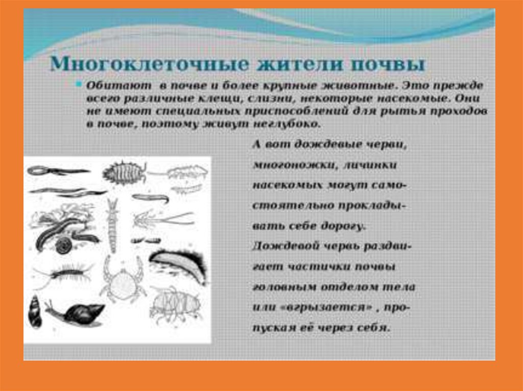 организмов. На первый взгляд кажется, что в почве мало животных, но это не