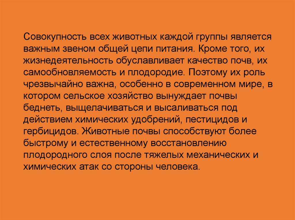 Совокупность всех животных каждой группы являетсяважным звеном общей цепи питания. Кроме того, их
