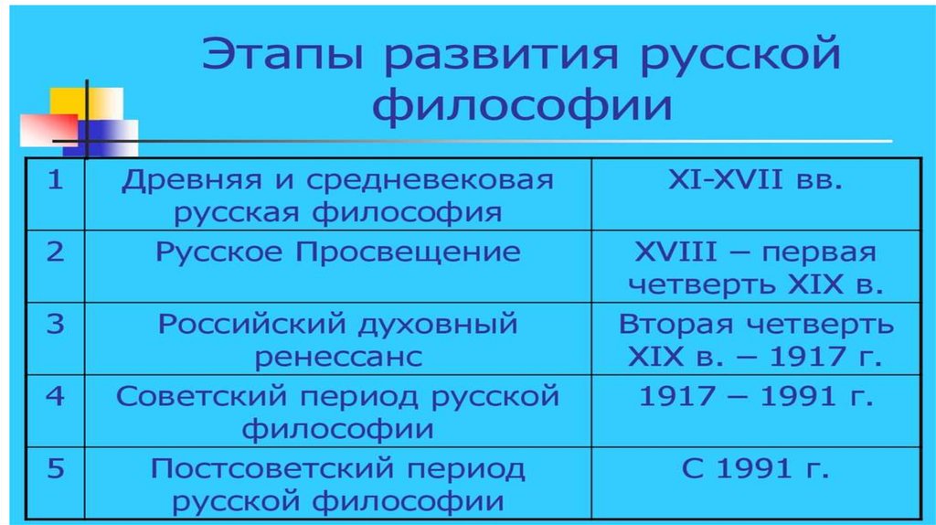 Русская философия. Особенности и основные этапы развития русской философии