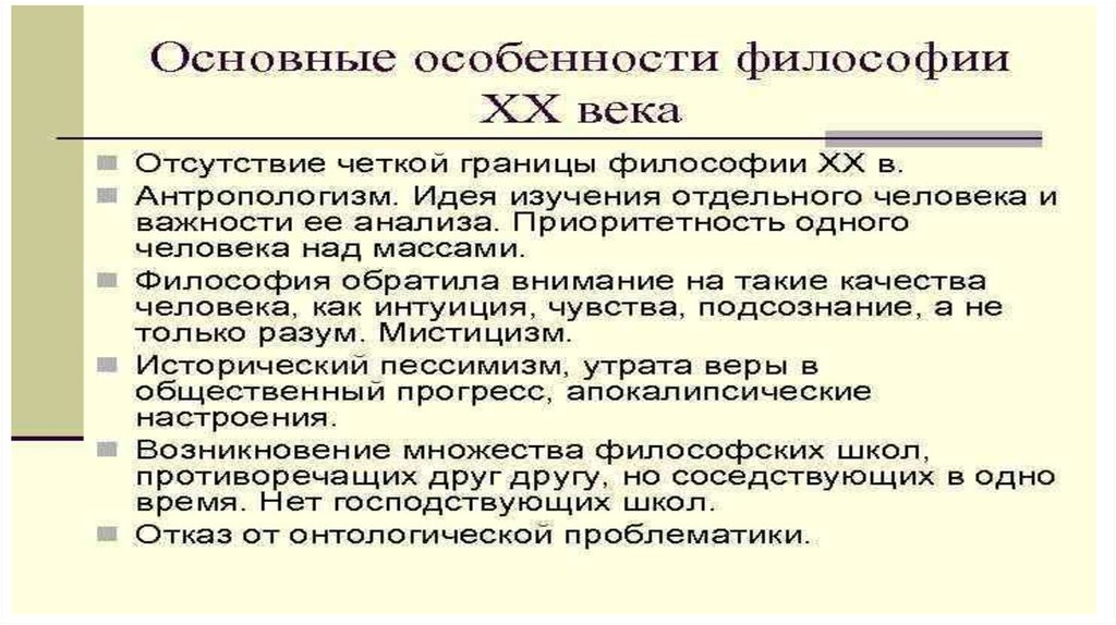 Основные направления философии ХХ века. Особенности русской философии