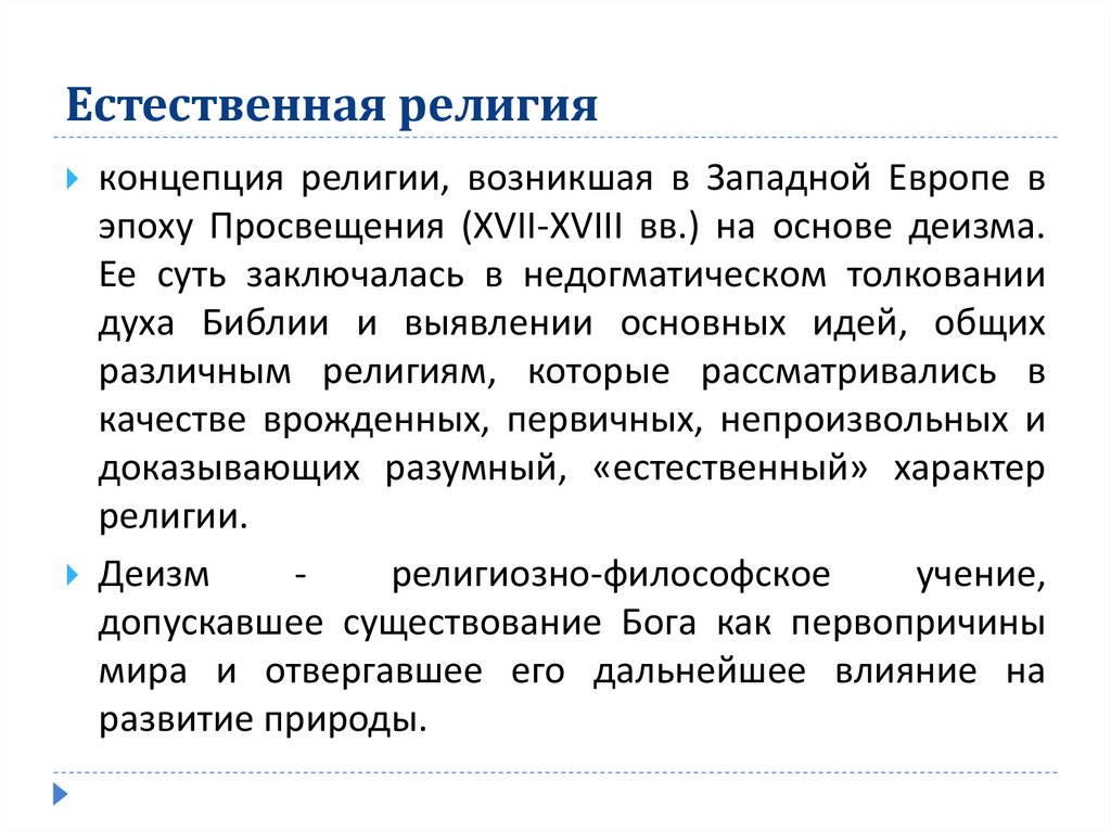 Естественная религияконцепция религии, возникшая в Западной Европе в