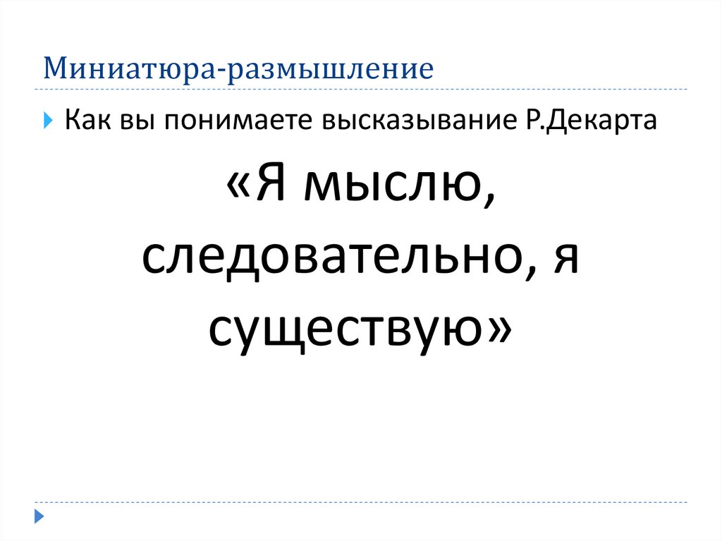 Миниатюра-размышлениеКак вы понимаете высказывание Р.Декарта
