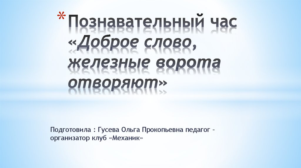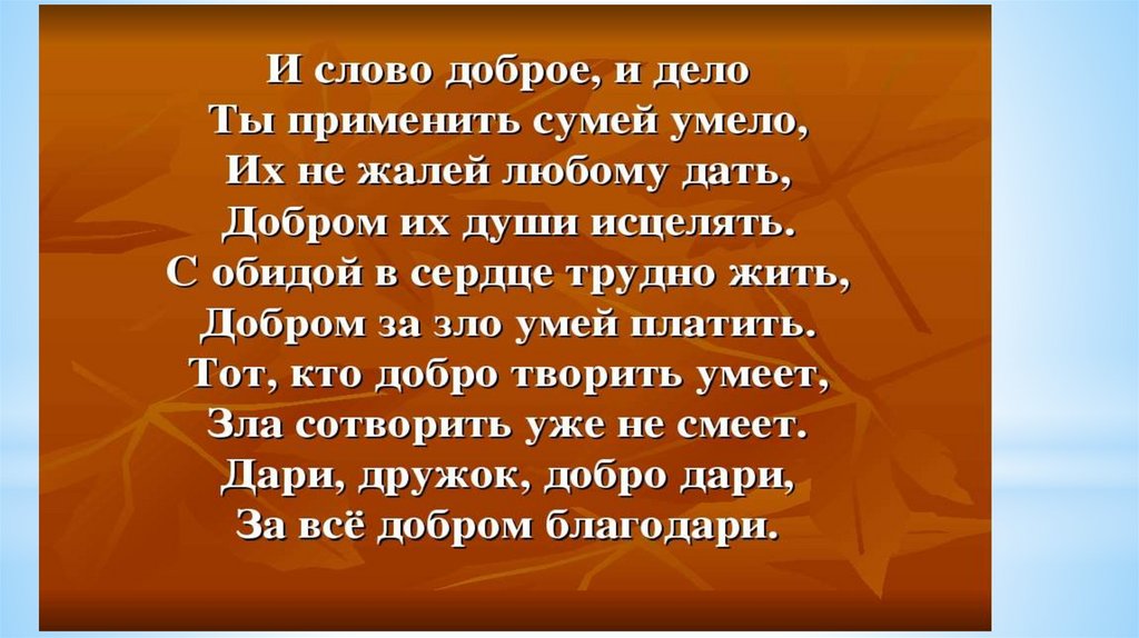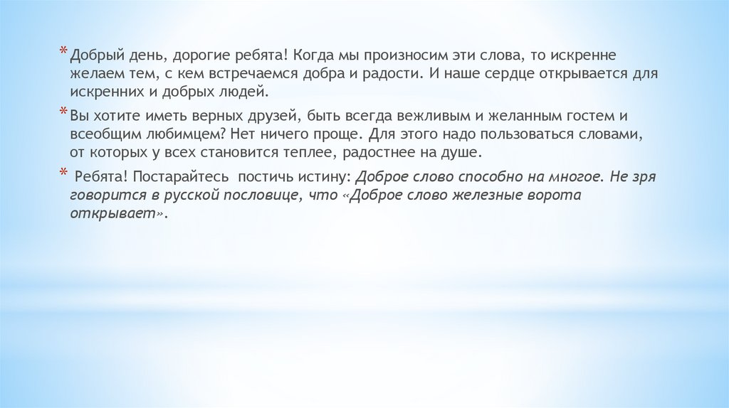 Ребята! Постарайтесь постичь истину: Доброе слово способно на многое. Не зря