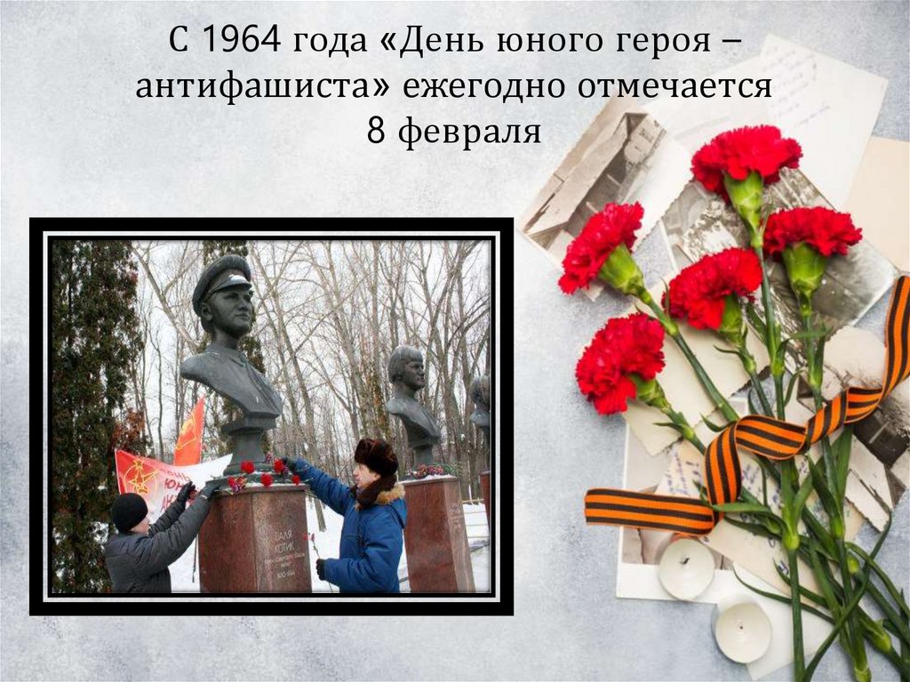 С 1964 года «День юного героя –антифашиста» ежегодно отмечается