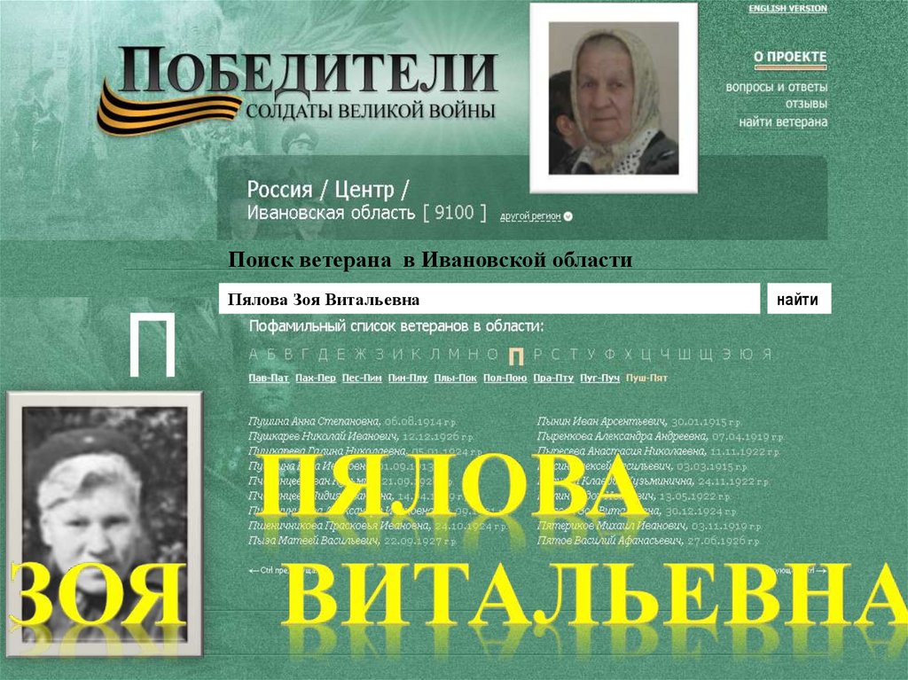 Поиск ветерана в Ивановской областиПялова Зоя Витальевна