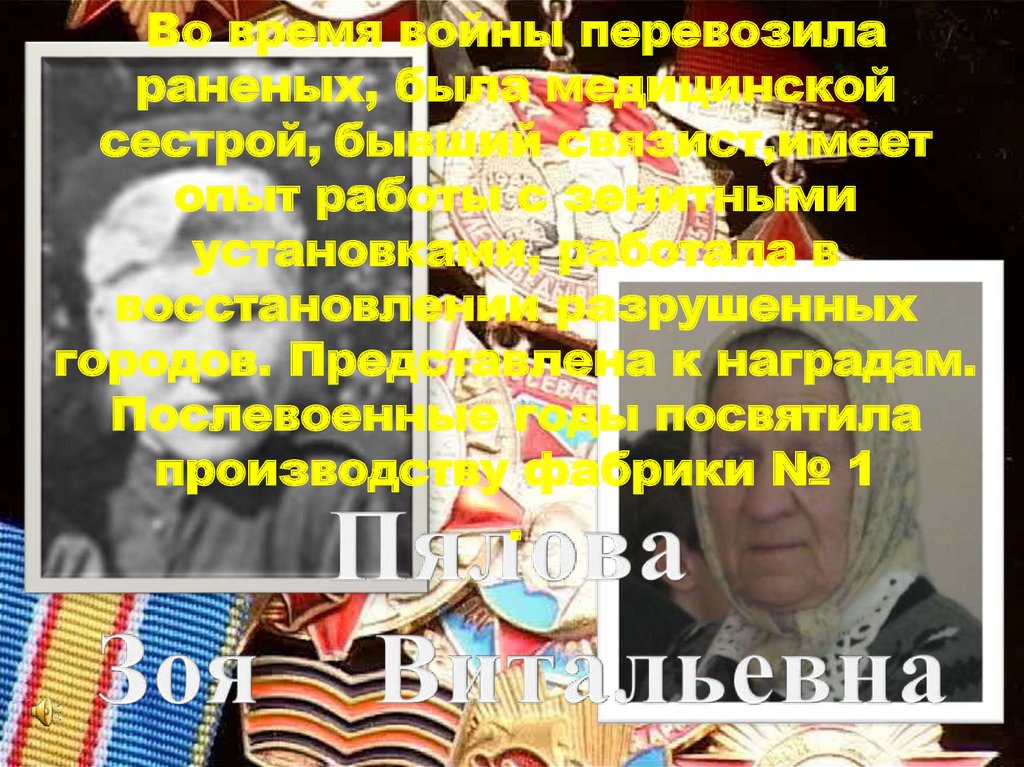 «Пялова Зоя Витальевна, 1924 годарождения. Работала в госпитале,