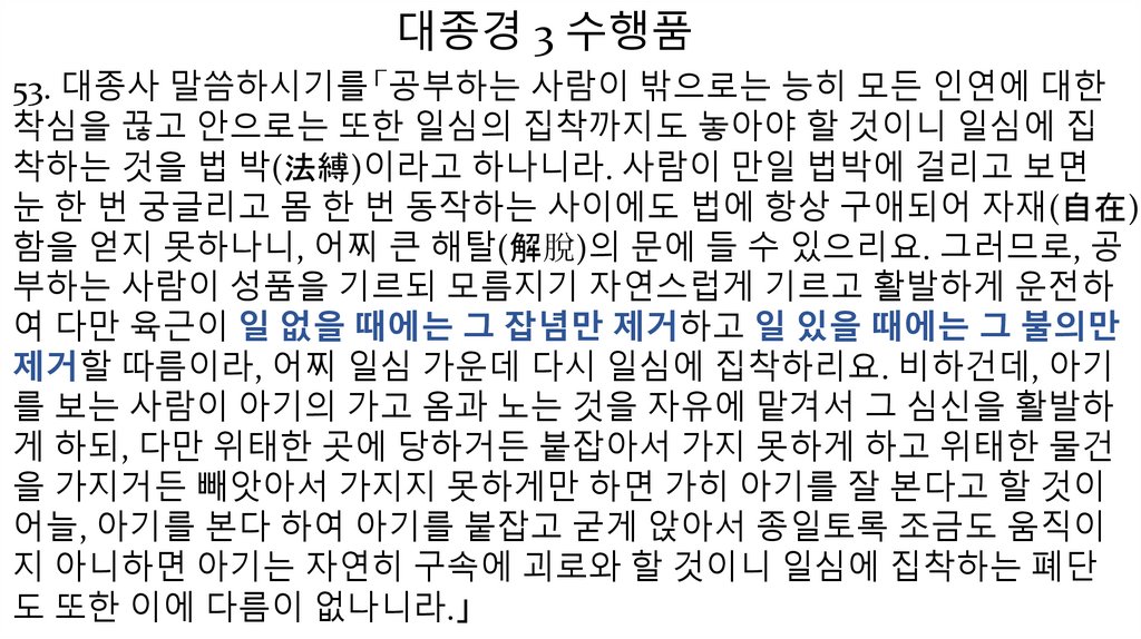대종경 3 수행품53. 대종사 말씀하시기를「공부하는 사람이 밖으로는 능히 모든 인연에 대한