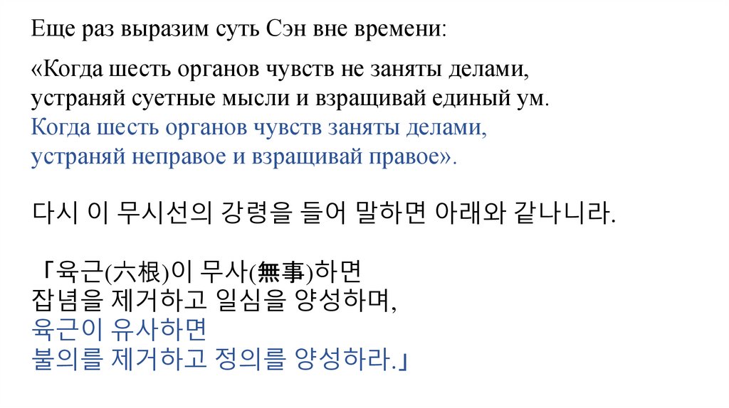 Еще раз выразим суть Сэн вне времени:«Когда шесть органов чувств не заняты делами,