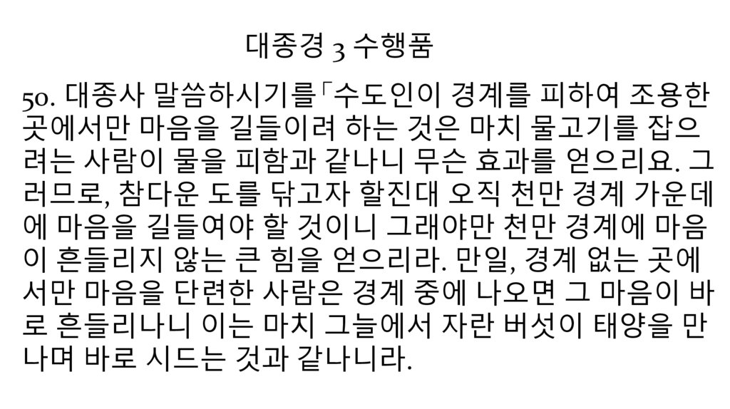 대종경 3 수행품50. 대종사 말씀하시기를「수도인이 경계를 피하여 조용한
